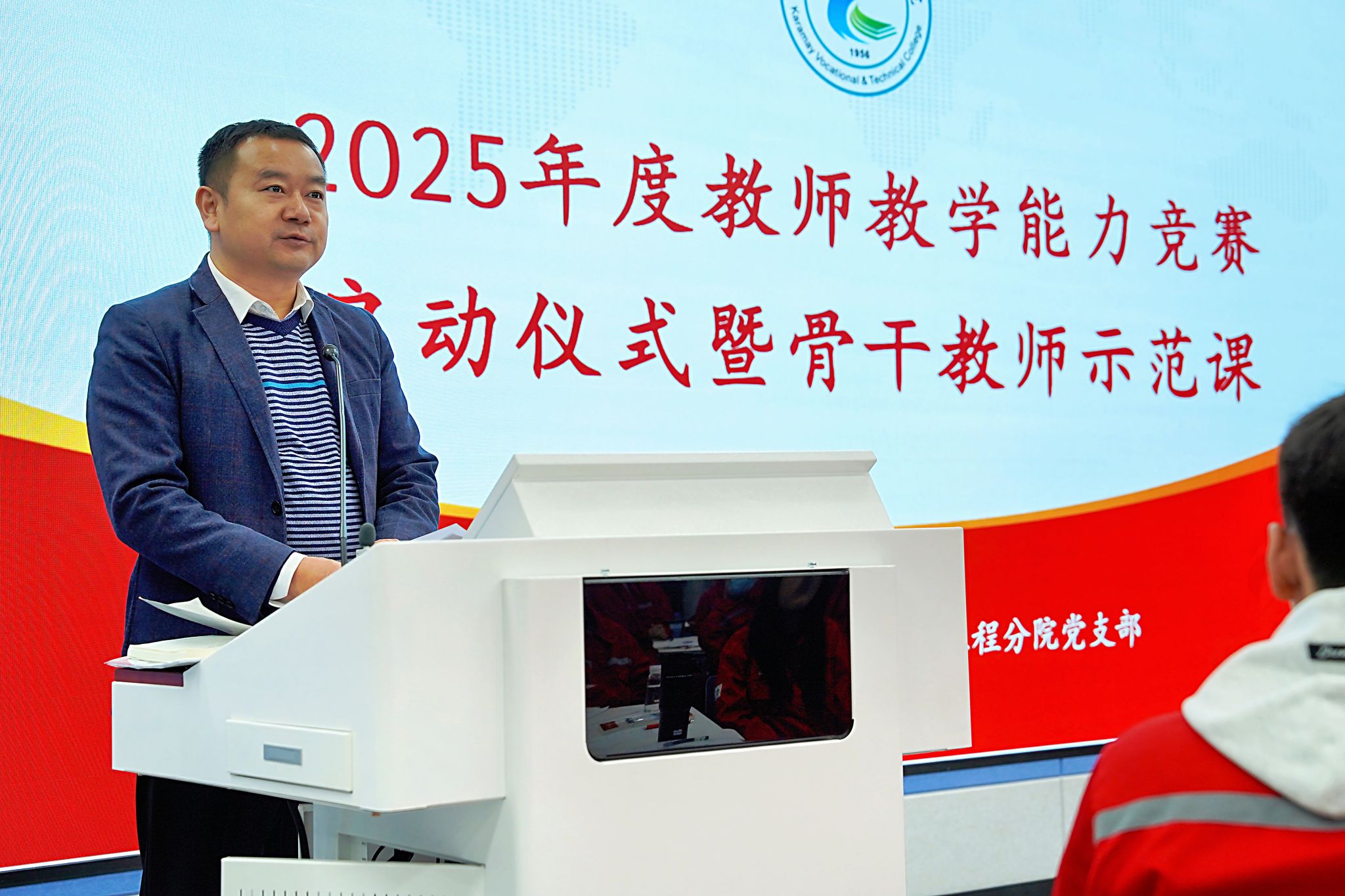 分院副院长王满宣读了本次比赛规则细则,从流程安排、评分标准到奖项设置进行详细解读,明确比赛将严格遵循“公平、公正、公开” 原则,为参赛教师打造规范透明的竞技环境,确保教学水平得到真实呈现。