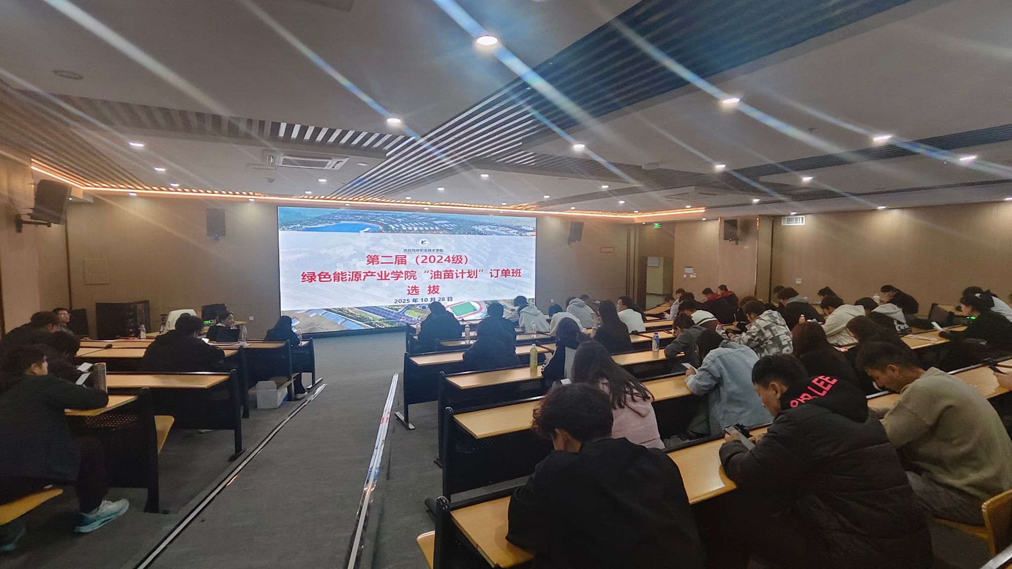 选拔前,由新疆分公司郑洁、国昆广源公司胡松珉和学院教师祝守丽分别介绍项目内容、往届“油苗计划”订单班情况与企业的成立背景,发展历程,企业规模、企业人才培养路径、薪资待遇等。选拔过程中,由笔试和面试两个环节组成,笔试题库由新疆公司出题,内容涵盖安全类知识、生产类知识与企业文化知识。面试环节评审团围绕专业基础知识、职业发展规划、行业实践意愿、自我展示与职业规划等核心维度,全面考察考生的综合素质与岗位适配度。考生们从容应答、充分展现扎实的专业功底与投身绿色能源产业的热忱,精准契合项目定向培养专业技术人才的核心目标。