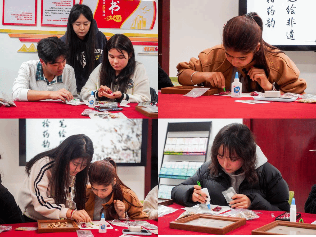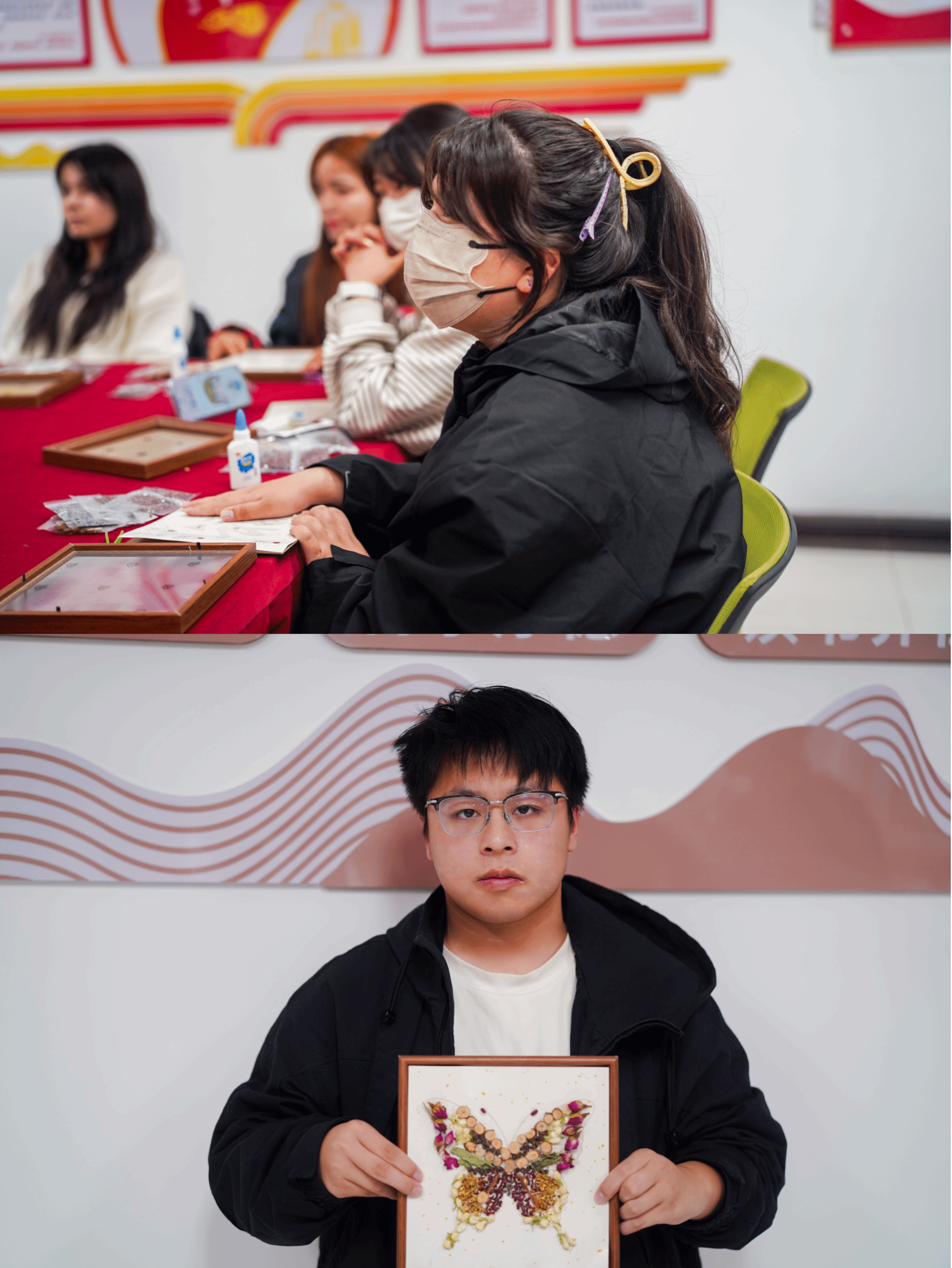 立冬时节蕴含着顺应时节、养生保健的古老智慧,中草药则承载着中华传统文化的深厚底蕴。活动精心筹备了玫瑰花,茉莉花,薄荷叶等常见中草药素材及创作工具,在活动中深入浅出的为同学讲解立冬节气的相关起源、优秀诗词和相关习俗。同时从节气中“温养平和”的智慧延伸到心理压力的调节,阐述了保持平和心态的重要性,引导同学们接纳自己的不完美,学会在生活中寻找平衡与满足。活动现场同学们纷纷表示对自我心理状态有了新的认识和思考。