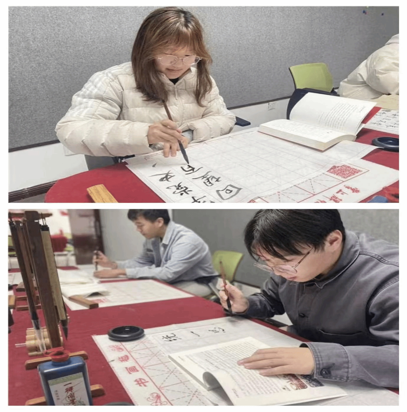 书法创作区里,同学们挥毫泼墨,将总书记重要讲话金句、经典著作摘录与红色精神内涵凝于笔端。一撇一捺间,不仅是笔墨技艺的展现,更是对红色思想的深刻体悟,让思政教育与传统文化艺术相融共生。