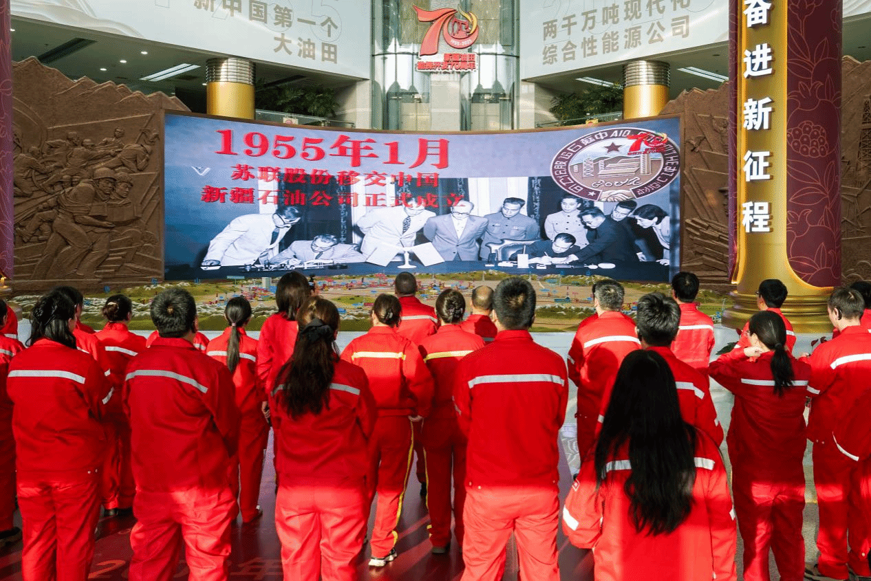 展厅以“跨越两千万,奋进新征程”为主题,以党的领导为主线、石油精神为脉络,既铺展油田从创业到跨越的发展长卷,也勾勒出“十五五”油气产业高质量发展的宏伟蓝图。泛黄老照片里,创业先辈在戈壁荒漠搭建的帐篷、紧握的管钳,定格“克拉玛依一号井”喷油打破“贫油论”的燃情时刻;锈蚀的勘探工具、泛黄的工作笔记等承载记忆的老物件旁,师生驻足凝视,静静聆听几代油田人以青春热血在荒漠书写的奋斗壮歌;一组组“从年产万吨到跨越两千万吨”的翔实数据,更让大家在主题党日现场教学中,直观感受时代变迁中油田的成长更迭。