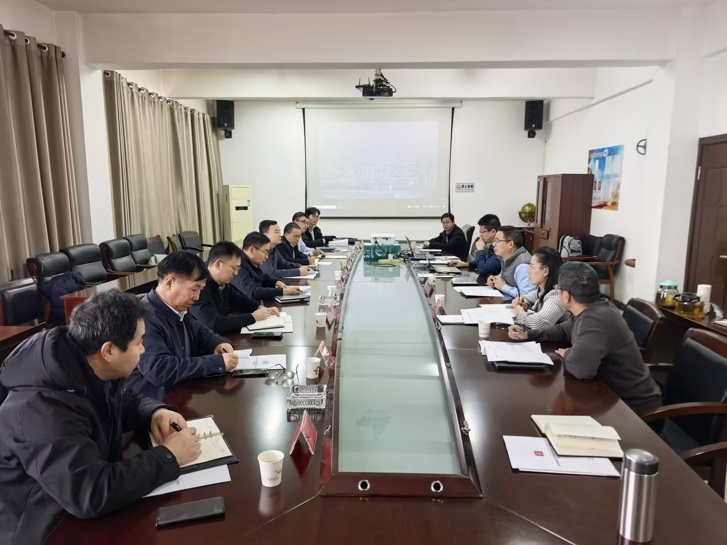 图1 学院魏新院长一行与园区管委会副主任吴学忠等领导现场交流座谈