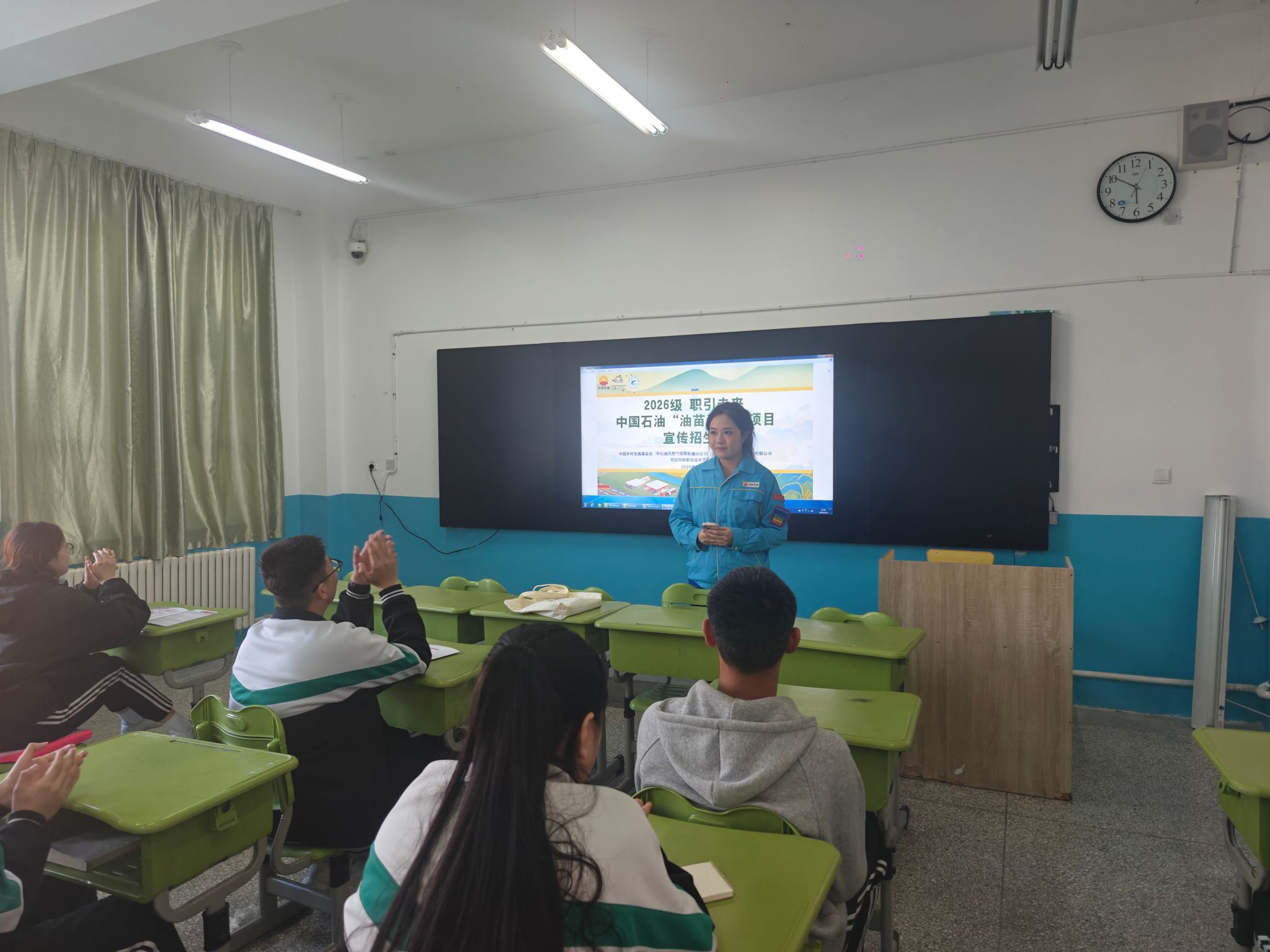 为精准对接新疆能源产业人才需求,夯实校企协同育人生源基础,3月25-26日,由中国乡村发展基金会统筹组织,学院招生就业办统一协调,“油苗计划” 项目组积极配合的 2026 级中国石油“油苗计划”招生宣讲活动,在伊犁、塔城、哈密、阿勒泰等地区的尼勒克县、察布查尔县、托里县、巴里坤县、青河县、吉木乃县六地顺利推进,此次预计招生100-150名订单班学生。一场场干货满满的宣讲,为当地高三学子搭建起 “入学即入职、毕业即就业” 的成长桥梁,赢得师生与家长的广泛关注。