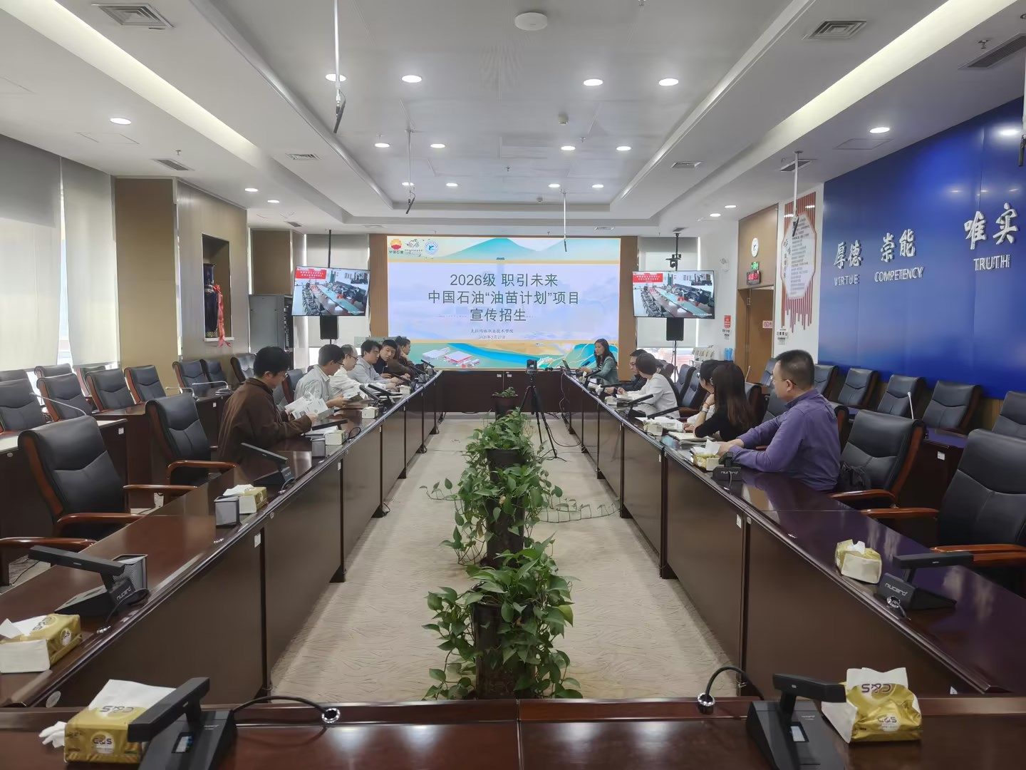 学院作为实施单位,将此次招生工作列为重点任务,“油苗计划”项目组制定 “线上全域推广 + 线下重点巡讲” 的双线宣传方案,在招生就业办协调下精心选拔骨干教师组建校企联合宣讲团,并召开招生宣传部署会,联合中石油天然气销售新疆分公司代表,分批次奔赴六县开展宣讲。“油苗计划” 项目组全程深度参与,梳理项目核心优势、往届培养成果、就业保障政策等关键内容,制作精美宣传手册与 PPT,为宣讲工作提供专业支撑。