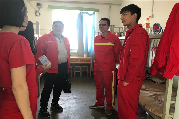 樊宏伟老师深入员工宿舍,关切的询问实习学生吃的怎么样、住的怎么样,看到学生们窗明几净的宿舍和优良的生活环境感到很放心。在看过学生们的生活区域后,樊宏伟老师与刘见通老师与同学们坐下来聊天谈心,询问同学们实习期间都学到了什么,有了什么收获。同学们纷纷表示,经过实习,明白了要理论联系实际,将书本上的知识与生产实际相结合,不但要知其然,还要知其所以然,在实习过程中不但增长了技能,也逐渐蜕变成了一个成熟稳重的有责任心的人,更加明白了工作的不容易,更加珍惜眼前的幸福生活。同学们都表示一定要多学知识,增长才干,用自己的双手创造出属于自己的美好明天。