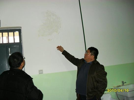 自查小组在检查房屋漏水情况