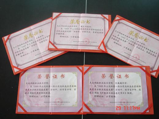 2009年12月16日,系部委派王满老师带队参加比赛,此次竞赛共设国土资源调查(区域地质调查与矿产普查)、水文地质与工程地质、地球物理勘查三个专业,分个人和集体两个项目。由于我院专业上差异,此次比赛我们只参加了国土资源调查(区域地质调查与矿产普查)个人项目。有安徽工业经济职业技术学院、重庆工程职业技术学院、吉林大学应用技术学院、云南国土资源职业技术学院等11所院校共计120名选手参加此次竞赛,比赛进行三天。在比赛中,我院学生们沉着冷静,发挥稳定,最终获得国土资源调查(区域地质调查与矿产普查)组优秀团体优胜奖,任巍巍同学获区域地质调查与矿产普查组《矿物岩石标本鉴定项目》铜奖,樊宏伟、黄卫、王满三位教师获优秀指导教师奖。